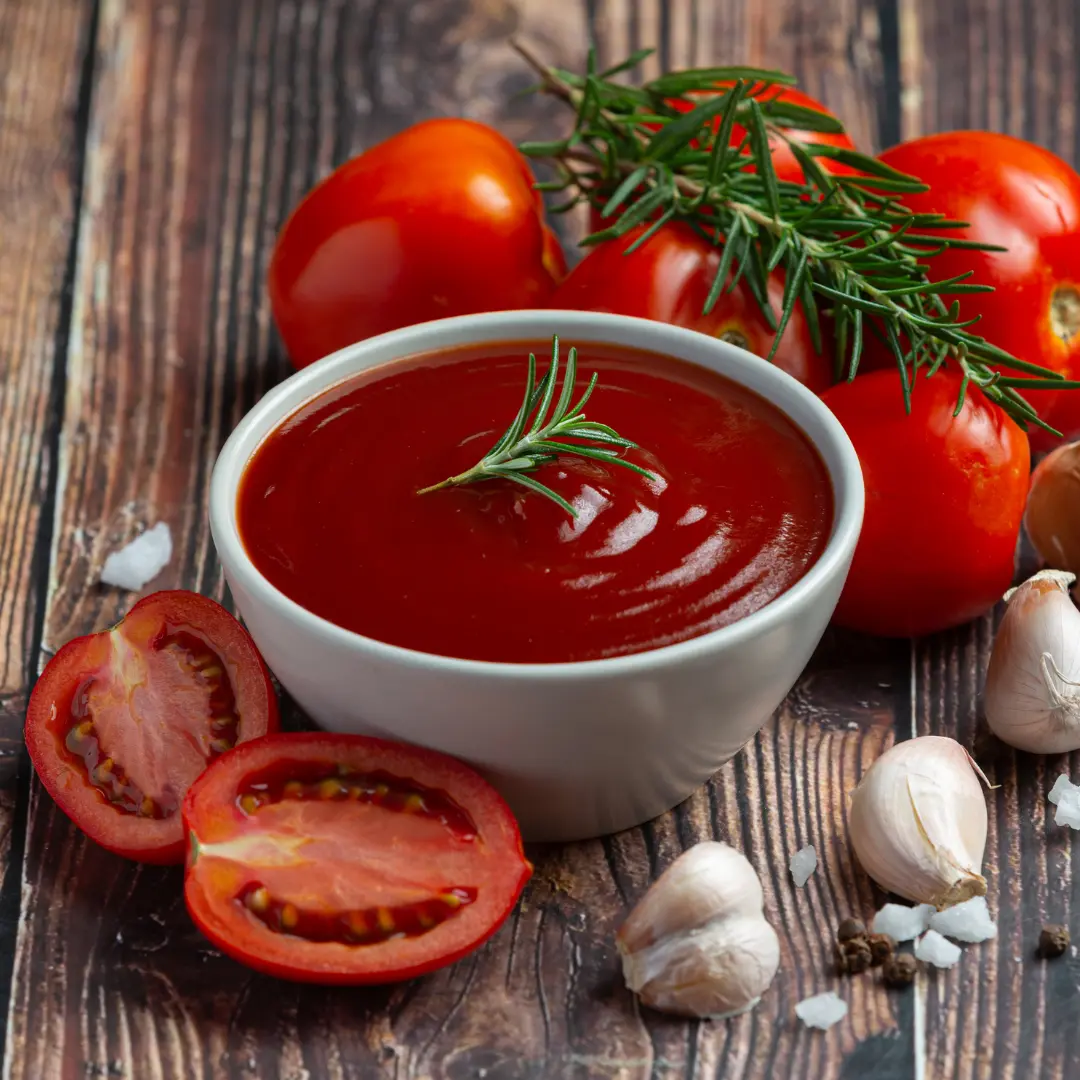 Tomato ketchup is a popular condiment, typically made with tomatoes, vinegar, sugar, and spices. It's widely used as a dipping sauce for fries, burgers, and other foods, or as an ingredient in various dishes. The flavor profile is generally sweet and tangy.