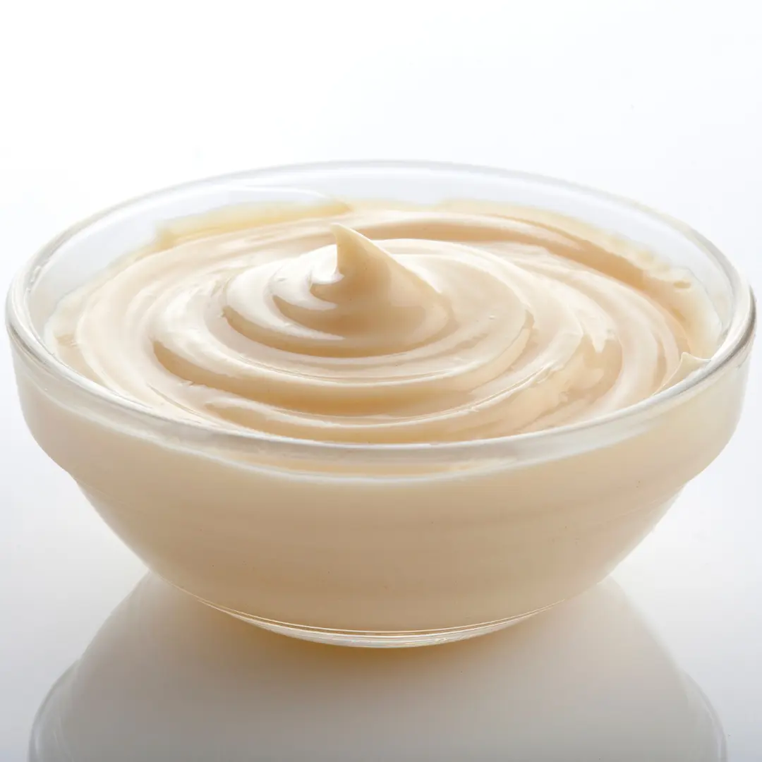 Mayonnaise is a thick, creamy sauce or dressing, typically made by emulsifying oil and egg yolks with an acid like vinegar or lemon juice. It's a versatile condiment used on sandwiches, salads, and as a base for other sauces.